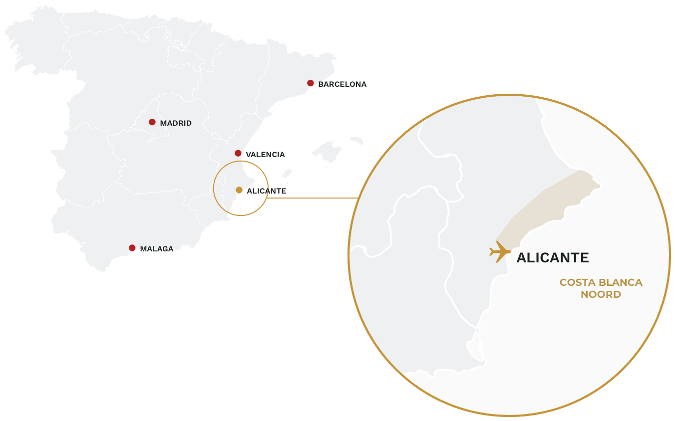 De Costa Blanca is een wel bekende kustlijn in het zuidoosten van Spanje, gelegen in de provincie Alicante binnen de autonome regio Valencia. Deze streek strekt zich uit over ongeveer 200 kilometer langs de Middellandse Zee en staat bekend om zijn witte zandstranden en helderblauwe zee, wat de naam “Costa Blanca” (Witte Kust) verklaart.