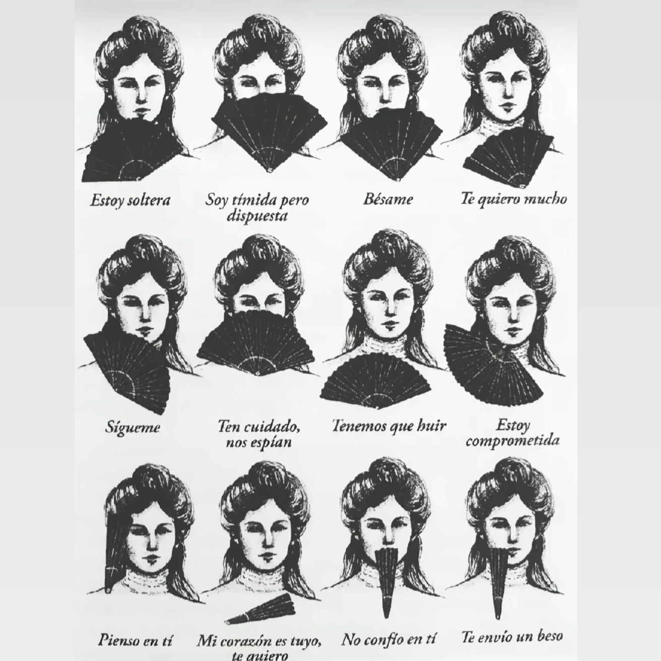 In het Spanje van de 18e en 19e eeuw gebruikten vrouwen de waaier als geheime communicatiecode. Een simpele handbeweging kon liefde verklaren, grenzen aangeven of een geheimpje fluisteren! Zonder een woord te zeggen.